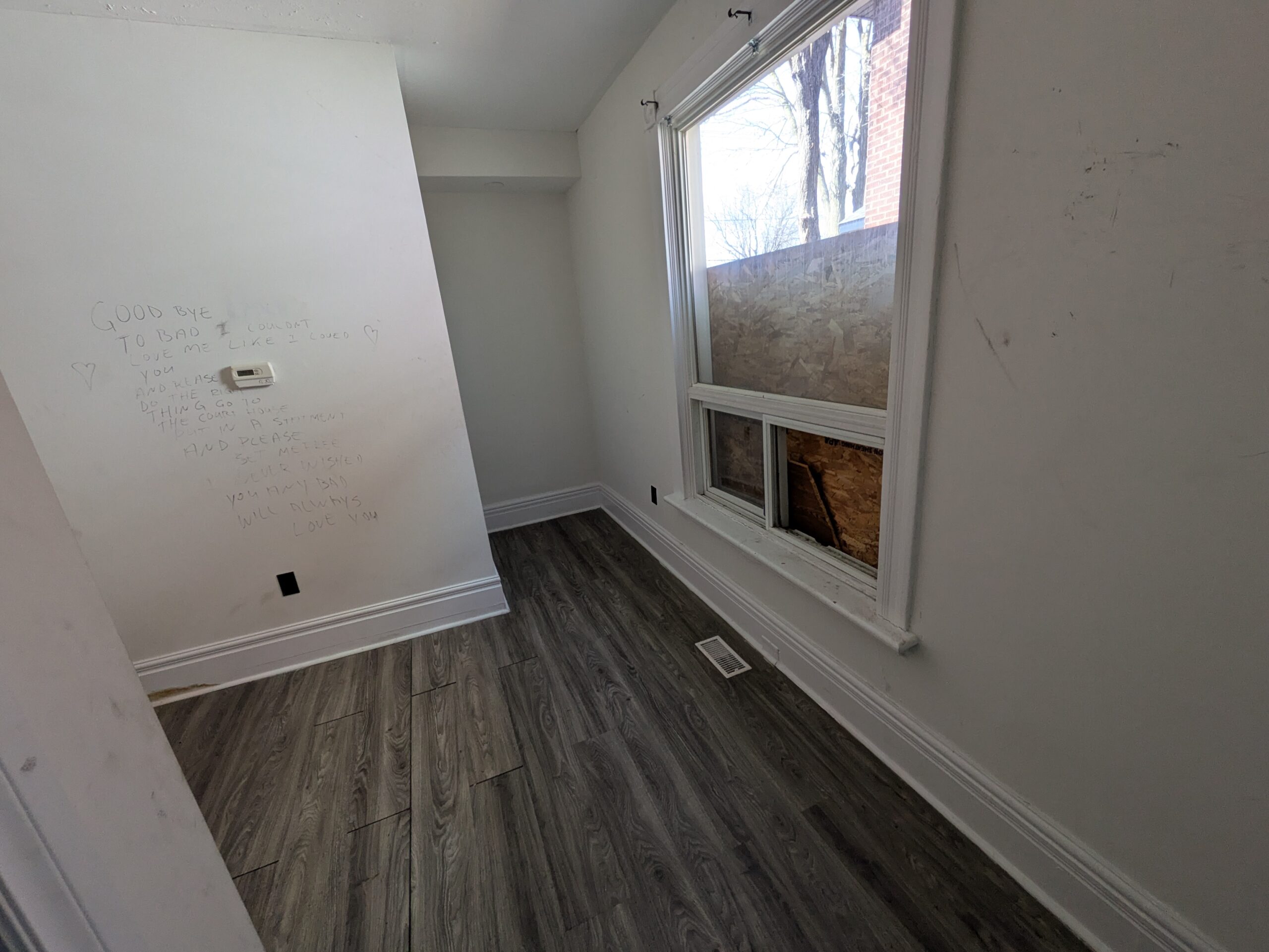 Property was recently renovated but now requires windows and doors and other work.